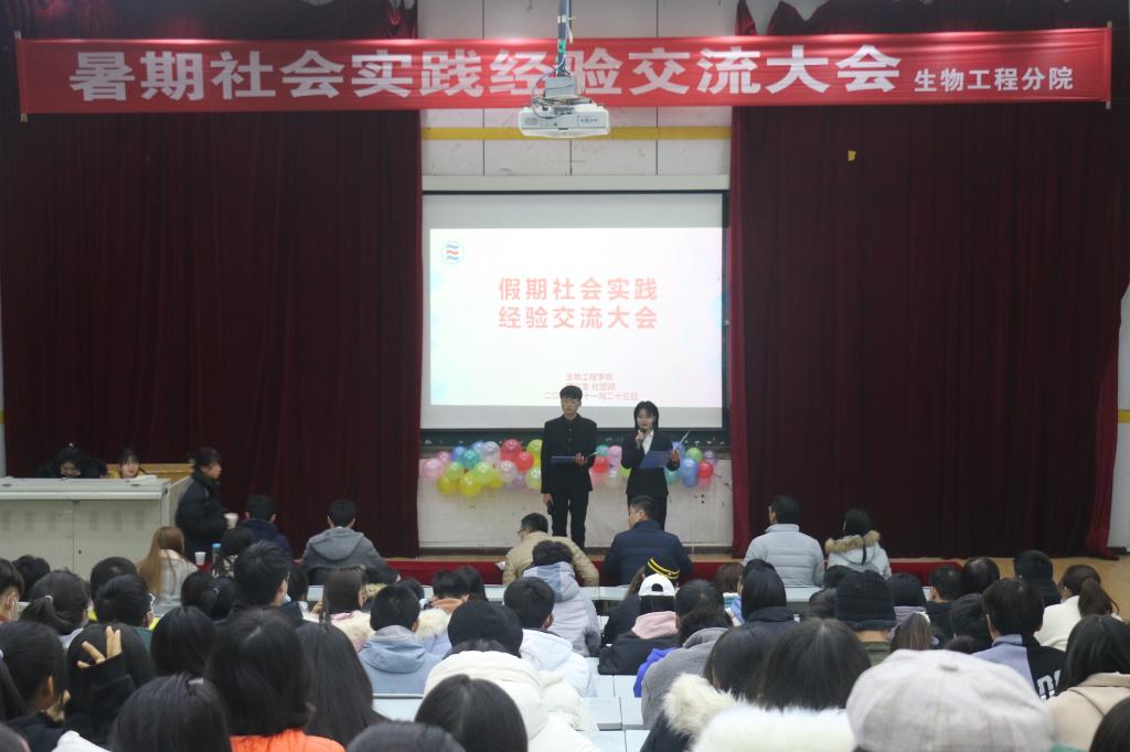 2020年我院以“小我融入大我,青春献给祖国”为主题积极组织学生开展暑期社会实践。这些实践活动主题鲜明深刻,内容丰富多彩,实践成效显著,取得了丰硕的成果,产生了广泛的影响。为引导广大学生明确社会实践内涵,更好地促进实践活动切实有效开展,11月23日下午,生物工程分院2020年暑期社会实践经验交流大会在西校区台阶教室举行。本次活动由生物工程分院实践部承办,旨在总结交流暑期社会实践活动经验成果,激发更多的学生积极主动参与到社会实践中来。生物工程分院学工办副主任贺立虎老师,全体辅导员老师及2020级新生共计300余人参加此次活动,8位暑期社会实践优秀代表先后登台交流心得经验。