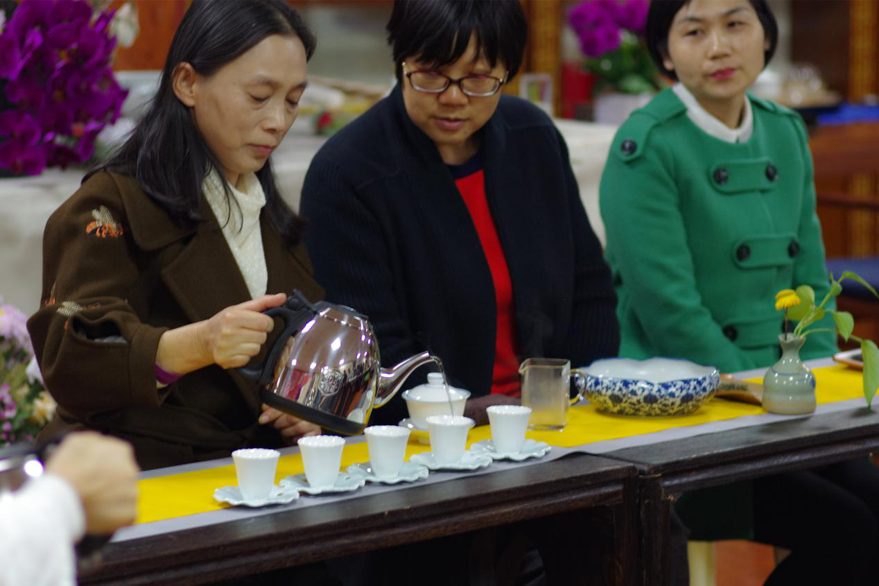 活动伊始,党总支书记李岩向全体女教职工表达了节日的祝福和慰问,并表示,女教职工平日要注意身心健康,继续发扬优秀品质,传承传统文化。接下来,特邀的茶艺师为女教职工们讲解了茶道文化,表演了沏茶、闻茶、倒茶、饮茶,传授了茶艺的步骤与过程。女教职工们在泡茶、品茶中了解中国深邃的茶文化,陶冶性情,放松心情。