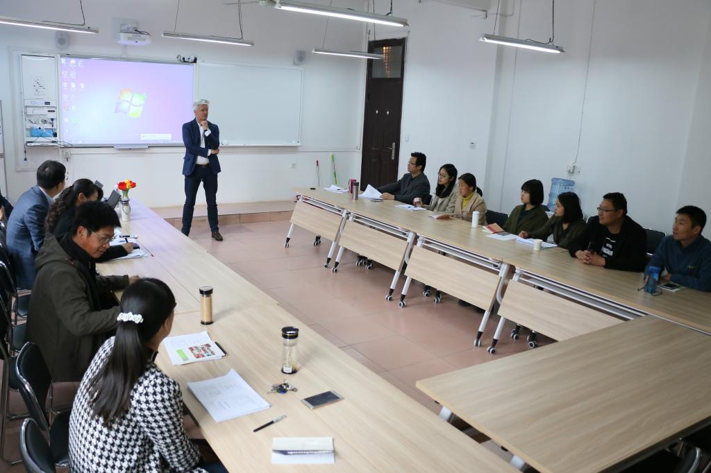 为推进我院国际化办学进程,促进现代农业技术相关课程的国际化建设,提升专业教师团队教育教学技能,3月19日上午,荷兰朗蒂斯教育集团的Mr.Oscar专家到我院开展相关培训,生物工程分院生技教研室、园艺教研室和植保教研室的14名专任教师参加了本次培训。