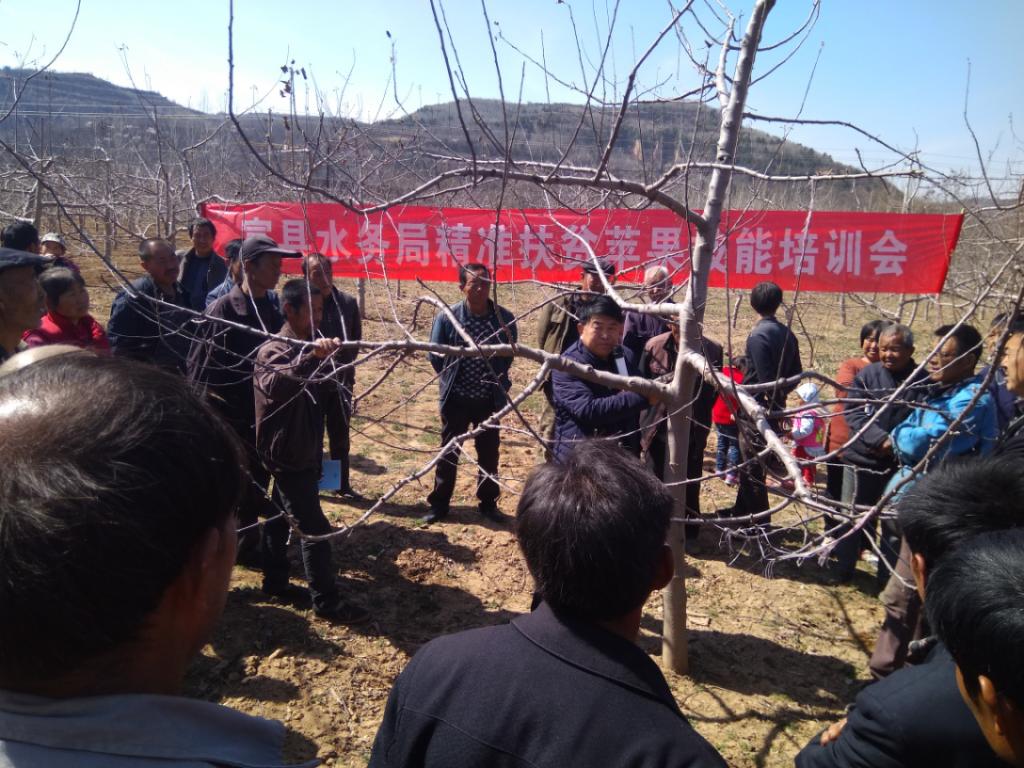 3月24-25日受富县水务局邀请现后在张村驿镇和交口镇开展春季果树管理培训,特别是针对果农背上旺枝利用,果园除草,春季清园,苹果花露红期喷药管理进行了细致讲解,受到干部群众一致好评。
