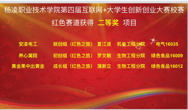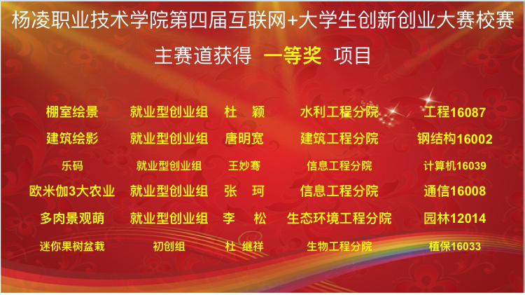 决赛中,经过紧张激烈的比拼,最终我院“迷你果树盆栽”荣获主赛道金奖;“当猪爱上了健美”荣获铜奖;“黄金果中出黄金”和“养心篱院”项目荣获“青年红色筑梦之旅”赛道银奖;“甜从田中来”荣获铜奖。