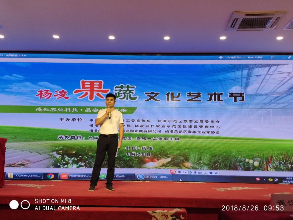 2018年8月26日杨凌果蔬文化艺术节隆重举行。在文化艺术节上,大型励志电影《疯狂庄主俏村官》举行了盛大开机仪式。我院教师黄璞老师策划并主持文化艺术节及开机仪式。