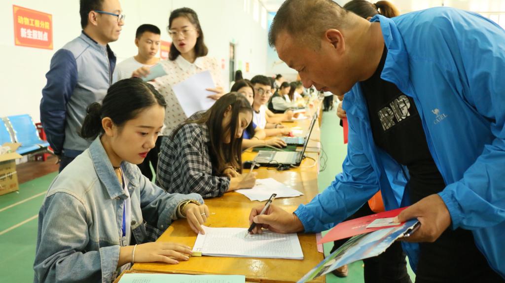 9月6日上午,我院2018级新型职业农民学历教育班开始新学期的注册报名。来自杨凌的31名职业农民、村干部纷纷来到西校区乒羽馆进行注册报名、领取军训服装。