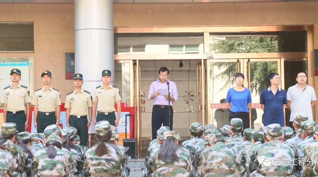随后,学工办贺主任对大一新生军训做出了具体安排,并从多方面对新生提出要求,希望广大学子立足长远,着眼未来,找准自己的人生方向、树立远大理想,脚踏实地为未来奋斗。