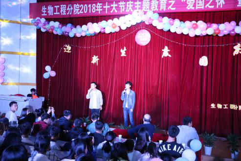 9月28日晚7:30分,由我院举办迎新晚会在西台阶教室拉开了帷幕,晚会以“迎新生,度国庆”为主题。党总支书记李岩老师、学工办副主任贺立虎、辅导员曹卫贤及何欢老师出席了本次活动。我们本着对文艺的理解和对生活的热爱,给新生们提供了一个轻松又丰富的大学生活的开端。