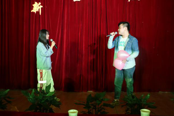 接下来,到了现场互动环节,我们开始了小游戏部分,随着主持人的调动,现场气氛十分活跃,新生们的叫好声,老师与同学的趣答使得观众们捧腹大笑,现场再次进入一个小高潮。