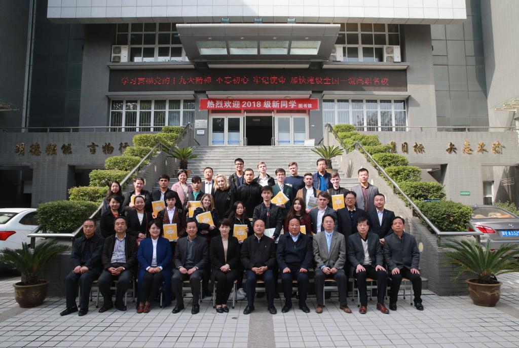 典礼仪式上,全体外国留学生签订了奖学金学习承诺书和安全承诺书;党委书记赵曼、院长王周锁,副院长张永良,代表学院向18名留学生赠发了汉语教学课本。
