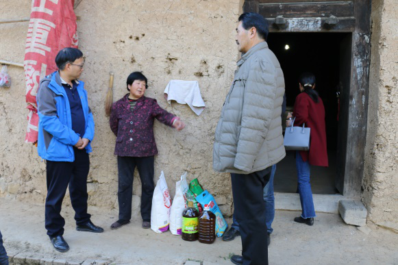 最后我院杨振华老师带领全体党员代表赴贫困人口家庭进行慰问,为贫困家庭赠送了部分生活用品。