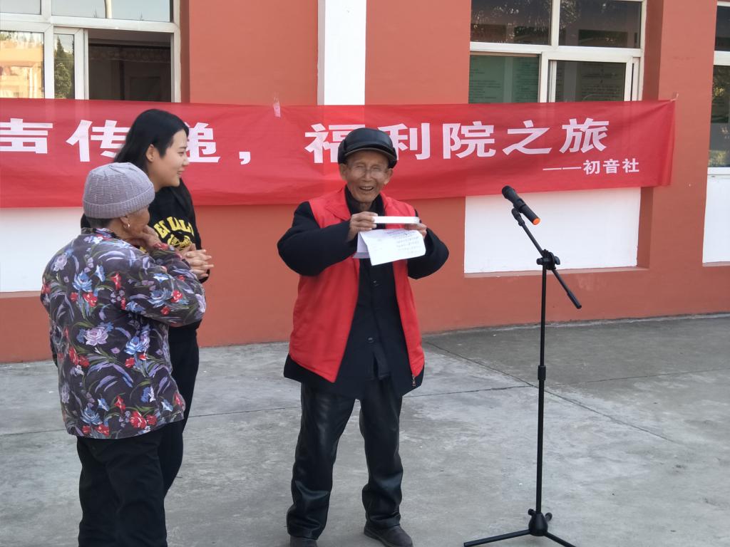 作为一名大学生,我们有责任去关心社会的弱势群体,用我们的方式给沉闷的福利院带去久违的欢声笑语。当微笑抹上老人们的脸颊时,更坚定了大家的社会责任感。希望有越来越多的人能加入到初音社,把快乐带给大家!