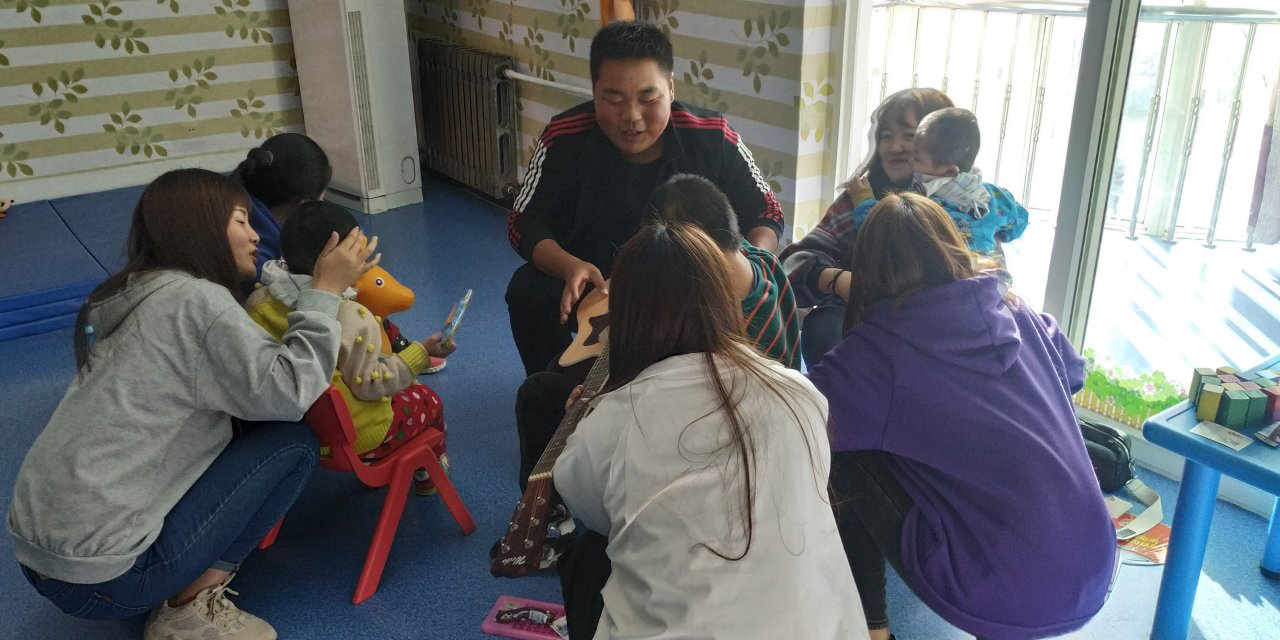 因为小朋友不方便外出,我们就带了四个人,让其中的一个吉他手给小朋友弹唱,看到孩子的笑脸,大家内心都很满足。结束后我们收拾会场,把院内的落叶清扫后,与老人小孩道别。活动圆满成功。