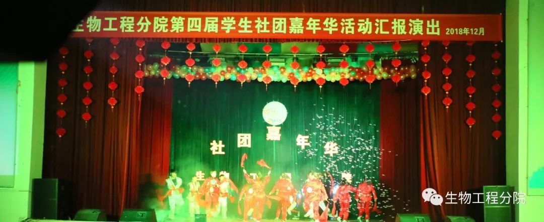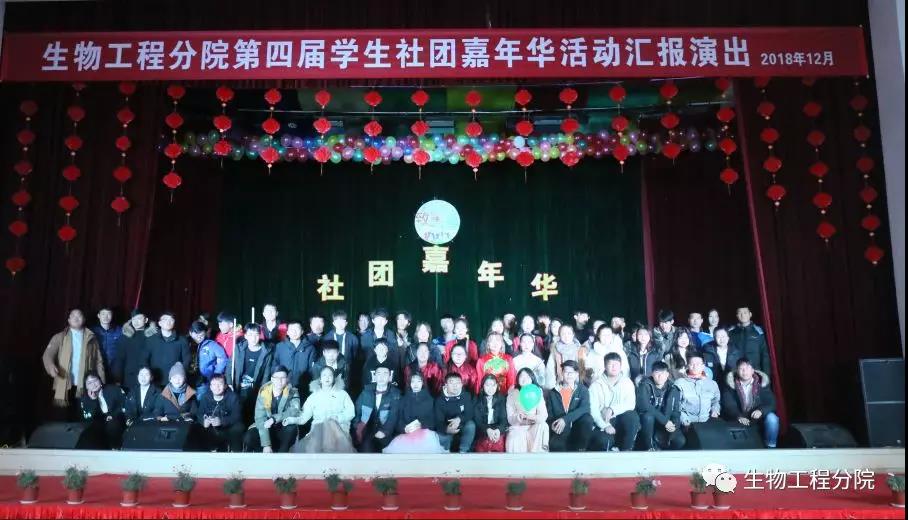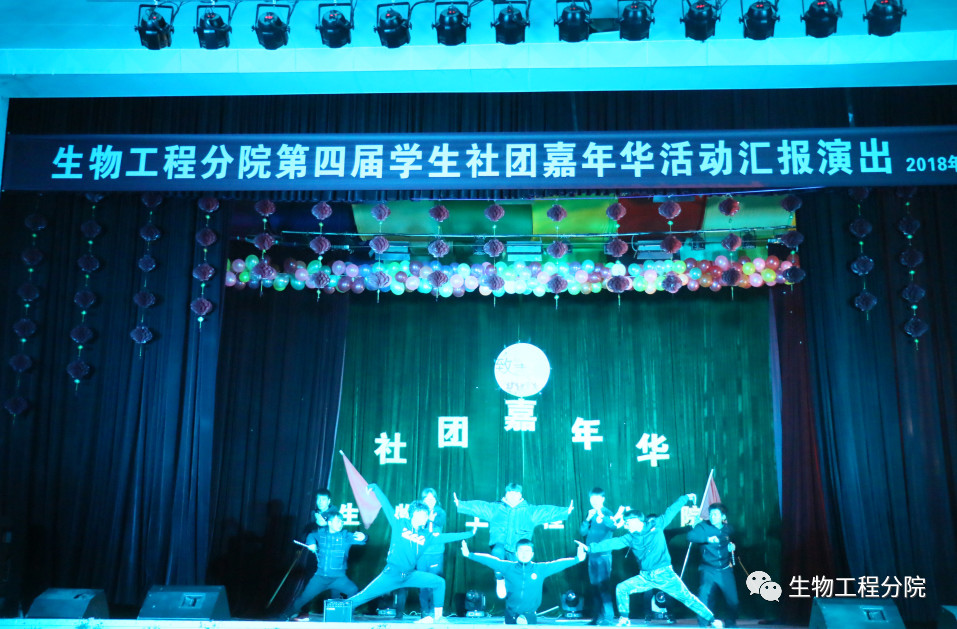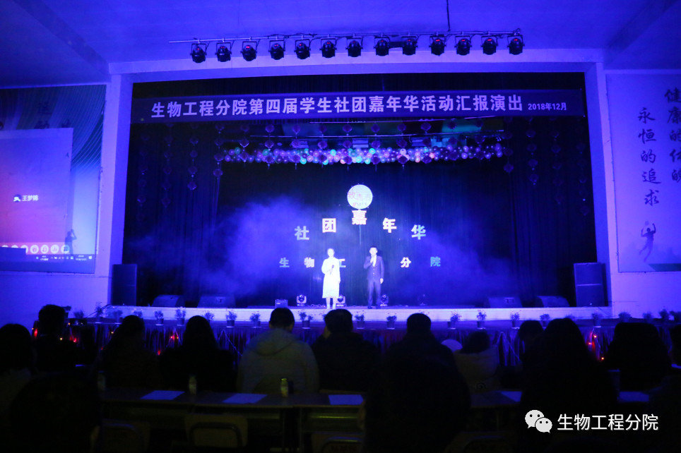 2018年12月23日晚,由生物工程分院主办、社团管理部承办和各部门、协会协办的“点燃激情彰显青春活力”第四届学生社团嘉年华汇报演出在乒羽馆拉开帷幕。出席本次活动的有生物工程分院党总支副书记李岩,学工办副主任贺立虎,学工办薛元夏老师、大一学生以及全体学生干部300余人。本次活动由九州旅行赞助。