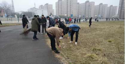 在我院的卫生责任区西操场,100多名学生和老师,手拿扫帚、铁铲、簸箕,奋力铲除杂草,清扫垃圾。好多同学就地取材,用树枝夹拾、甚至用手直接捡拾散落在草坪、周边林地中的垃圾。经过近两个多小时的劳动,清理出好几大袋好长时间未清扫过的垃圾废物。