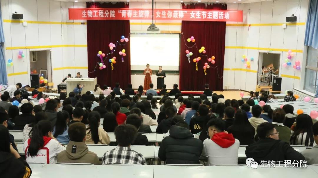 2019年3月7号下午七点,由生物工程分院学生会女生部主办、青春时尚社协办于西台阶举行了“青春主旋律,女生你最棒”的活动。 参与本次活动的有学工办何欢老师和学生干部以及大一全体学生,共计300余人。