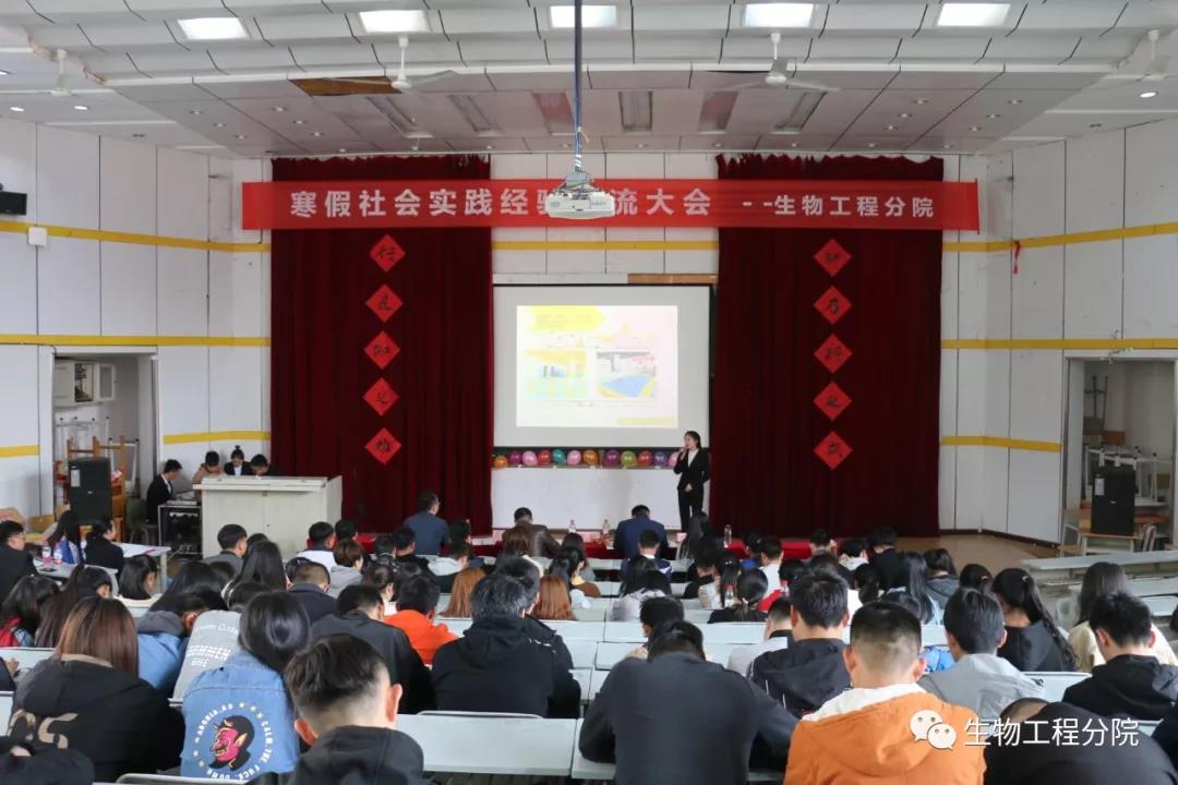 4月1日下午4:30,生物工程分院举办了寒假社会实践经验交流大会,参加本次大会的有学工办副主任贺立虎老师,全体辅导员、学生干部及大一年级学生共200余人。