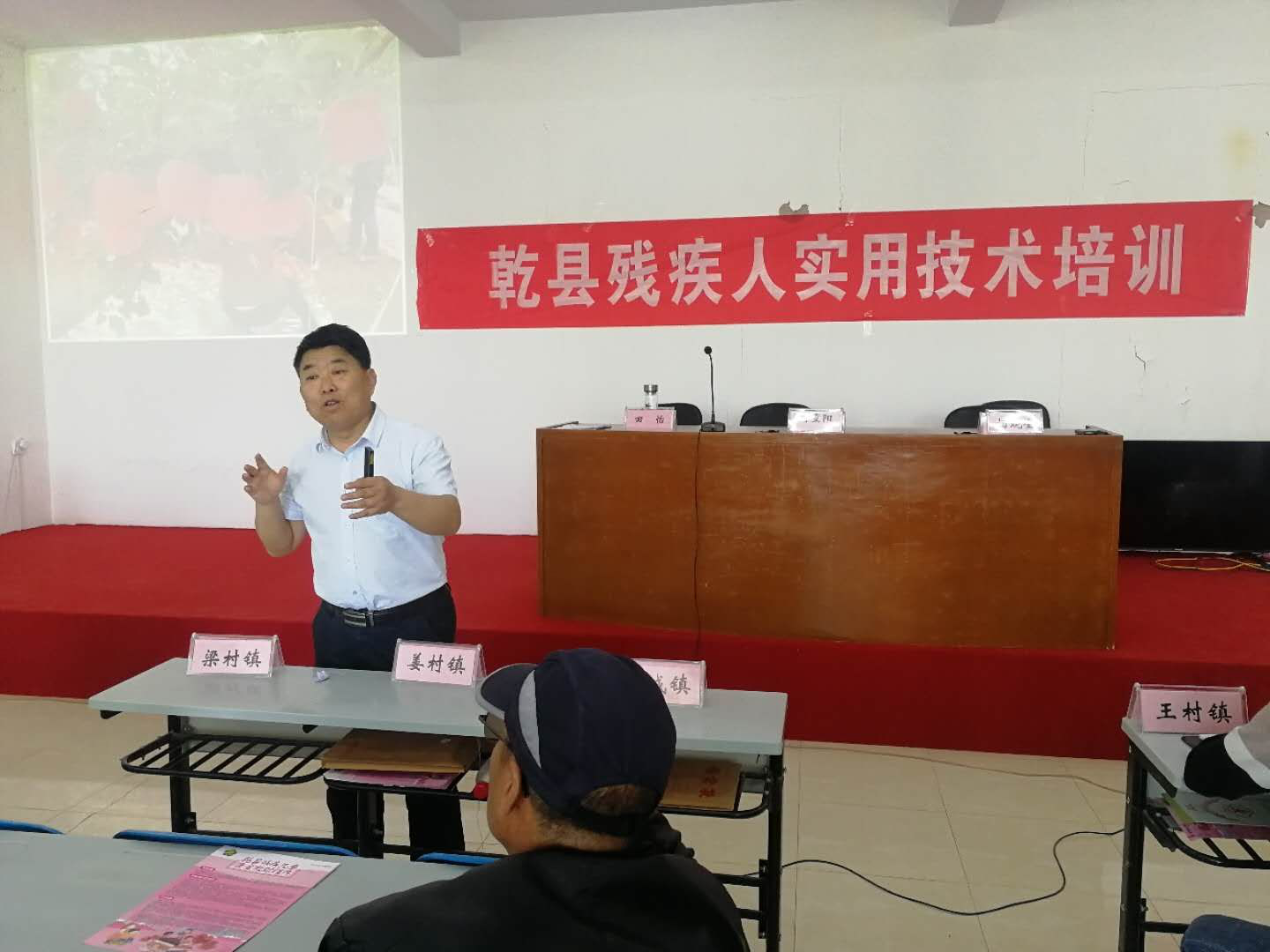 4月27日,受乾县残疾人专委邀请,我院教师马文哲教授赴乾县党校三楼教室,对来自全县16镇4个社区的200多名残疾人进行了绿色食品苹果生产与质量控制技术培训.