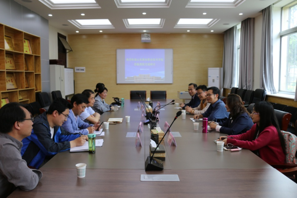 5月9日,山东商业职业技术学院食品药品学院院长段荣帅一行5人来我院参观交流。党政办副主任刘根劳、生物工程分院院长范学科及食品专业教研室主任龙明华、专任教师与来访教师进行了座谈。