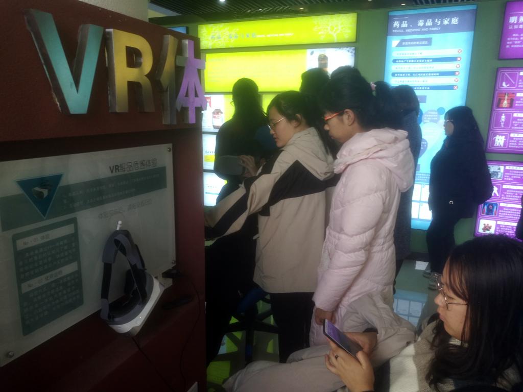 紧接着大家争着用VR设备观看禁毒场景模拟和互动体验,在触屏上答有关禁毒问题。最让我们感兴趣的就是拍摄吸毒后的虚拟照片,照片显示吸毒三年脸上就有了溃烂;吸毒五年之后,人就看起来老了很多,眉间的皱纹也多了,脸也消瘦了很多;吸毒十年之后黑眼圈特别严重,脸上的溃烂也特别深了。通过这些照片的变化让大家看到了吸毒的极端可怕。