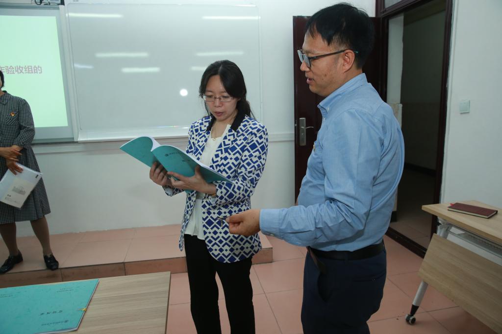 验收组首先观看了“标杆院系”培育创建示范点( “双带头人工作室”)创建微视频,听取了生物工程分院党总支书记李岩的创建情况汇报,查阅了相关资料,查看了“双带头人”工作室、党员活动室、谈心谈话室,并对相关问题进行提问和谈话,对创建过程的具体措施进行详细查证与重点问询。