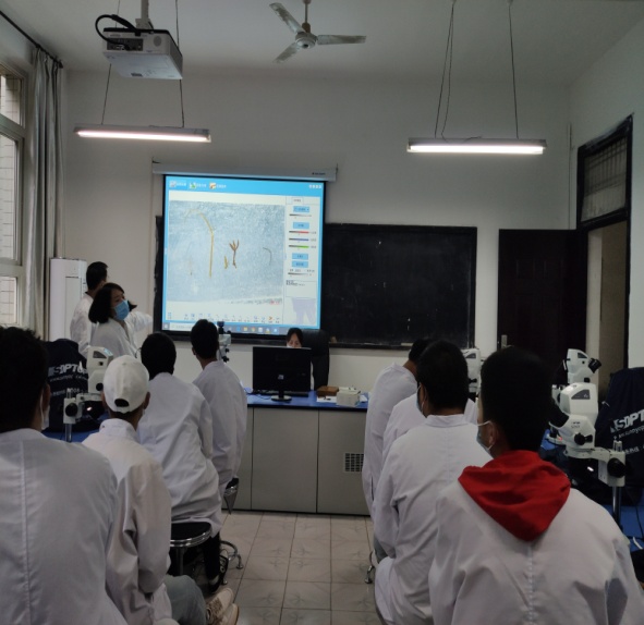 为了使任课教师在今后教学中更高效地使用该系统,更好地服务于教学,6月16日上午,该系统工程师应邀来到实验室进行了现场使用培训。工程师现场演示了显微数码互动系统的教学功能、图像采集功能、个性化学习功能以及测试功能等,参训教师就如何利用新技术提高教育教学质量与培训人员进行了深入交流。