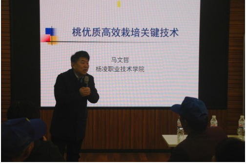 在培训中,马老师为种植户讲授了桃树、苹果树的管理以及优质高效栽培果树的关键技术,并在果树管理、土肥管理、果树营养等问题上进行讨论,帮助农户解决果树种植管理难题。