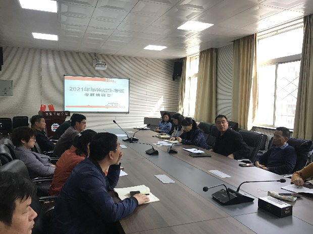 3月12日下午,分院召开了2021年单独招生考试考前培训会,分院院长、全体考务人员和监考人员参加会议。培训会上,办公室副主任沈静带领笔试监考教师共同学习了2021年单独招生笔试监考培训手册,明确了考试时间地点、发题要求以及试卷收交和装订要求。副院长王燕就单独招生考试面试工作进行了详细安排,分别从考官和工作人员职责、考场纪律、面试抽题注意事项、面试成绩、接待服务等方面做出明确要求。院长范学科强调,单独招生考试就是国考,监考人员要高度重视,以高考标准严格对待,严守考试纪律,确保考试公平公正,有序进行。