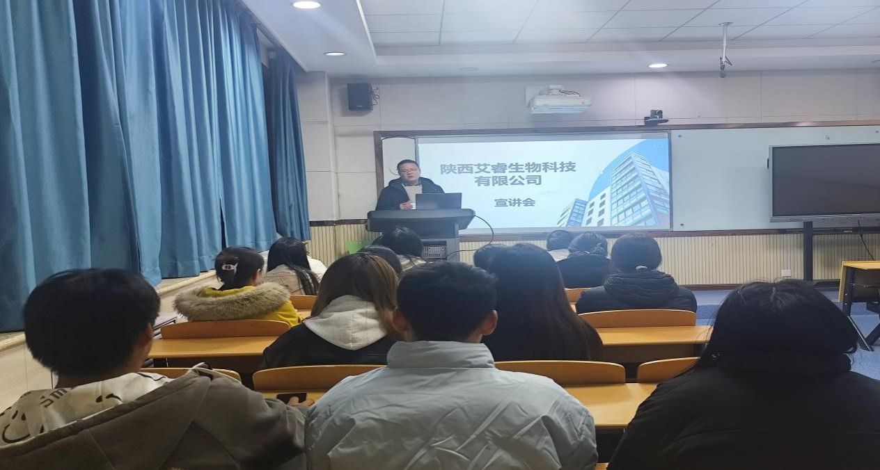 11月6日,为深化校企合作、拓宽学生就业渠道,我院邀请陕西艾睿生物科技有限公司来校开展专场宣讲会,吸引了2026届生物技术及相关专业学生积极参加。