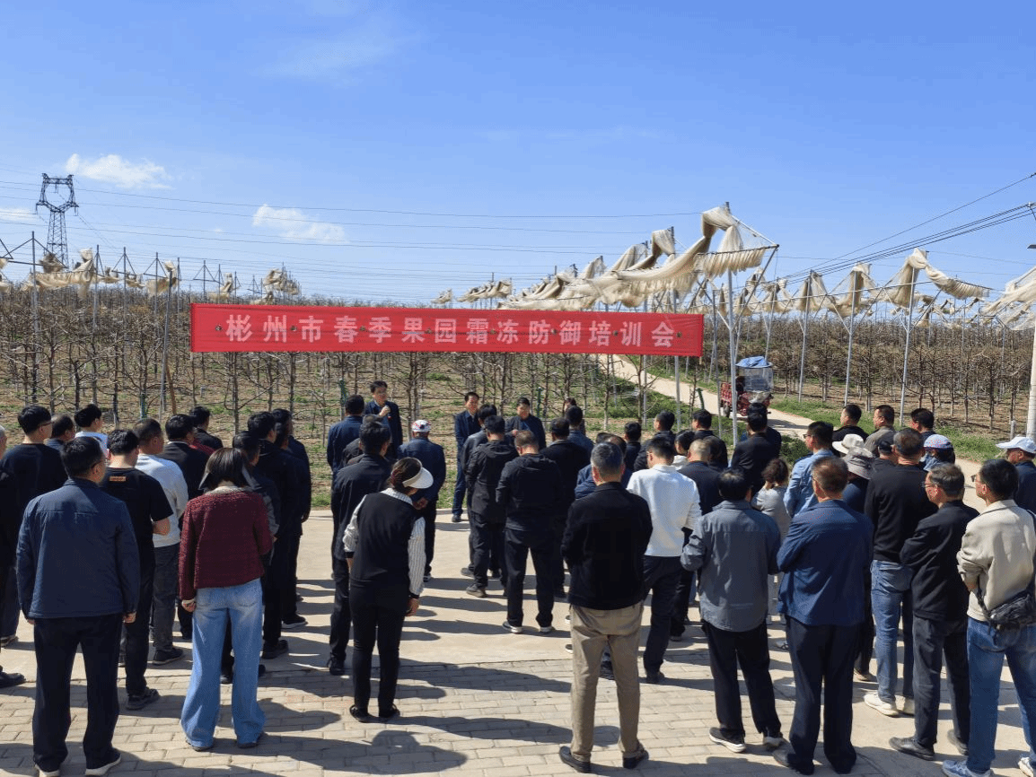 为助力彬州市果业高质量发展,切实解决果农生产中的急难愁盼问题,3月24日至26日、4月1日至3日,我校生物工程学院马文哲教授、尚晓峰副教授等一行6人组成专家服务团,赴彬州市开展果园春季管理技术指导与服务,并参加苹果高质量规范建园和苹果、梨树防霜冻两场专题技术培训会。彬州市副市长赵亚鹏出席,市果业服务中心、气象局相关负责人,各镇(街道办)分管领导、村党支部书记、涉农企业及合作社负责人、果业技术人员、果树种植大户参加培训。