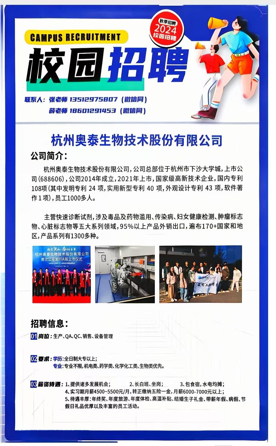 杭州奥泰生物技术股份有限公司2026届招聘简章