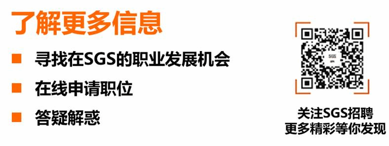 SGS今天的骄人成绩依靠的是一个富有理想和激情、充满追求和进取精神的团队.我们竭诚为优秀人才创造和谐公平、可持续发展的竞争环境,从而使我们的团队为SGS这个百年卓越品牌实现一个又一个新的梦想,同时我们也相信您会在SGS找寻到你的职业生涯的成就感及应有的回报。